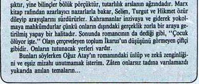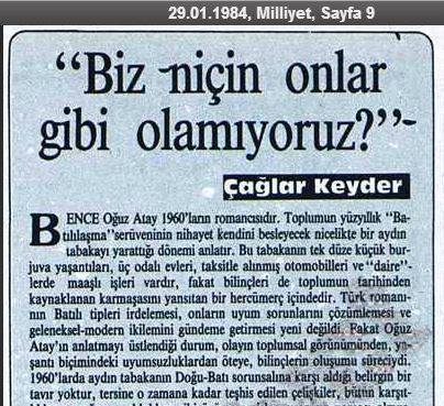 Neredeyse beş yıl önce, kendi tezim için Milliyet gazetesi arşivlerini karıştırırken çok ilginç bir yazıyla karşılaştım. Sanırım, Oğuz Atay’ın Tutunamayanlar’daki inşaat sektörü, devlet, bürokrasi, aydınlar ve entelektüellerin kendilerini bu Brechtci tuhaflıklar karşısında kaybetmeleri gibi bir sürü temayı eşelerken, Çağlar hocanın bu kısa ama güzel yazısını buldum.