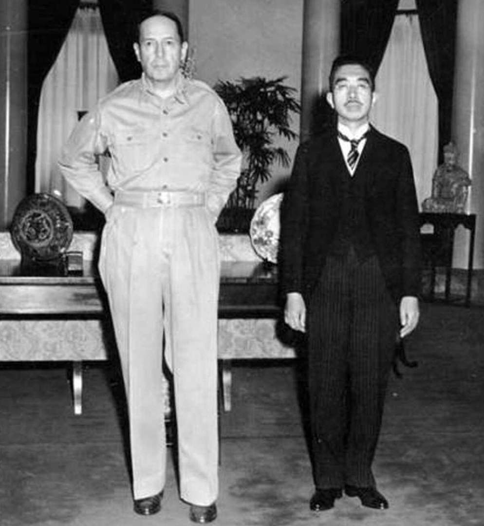 Aşağıda gördüğünüz fotoğraf, imparatorun şahsına karşı yapılabilecek en büyük saygısızlığı içeriyor, eller belde, eşitiz, hatta ben ondan daha iriyim diyerek MacArthur o zamana kadar kutsal bir karakter taşıyan Showa imparatorunu kendi gücü altına indirgediğini işaret ediyordu.