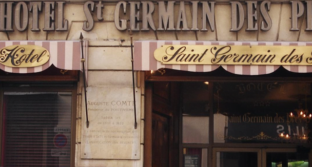 Bu kare, Auguste Comte’un -mesleğin kurucusu da olması hasebiyle- izlerini takip ettiğim yürüyüşün sonunda, Les Deux Magot’da oturamayıp onun karşısında bir kafeye yerleşmem esnasında çekildi.